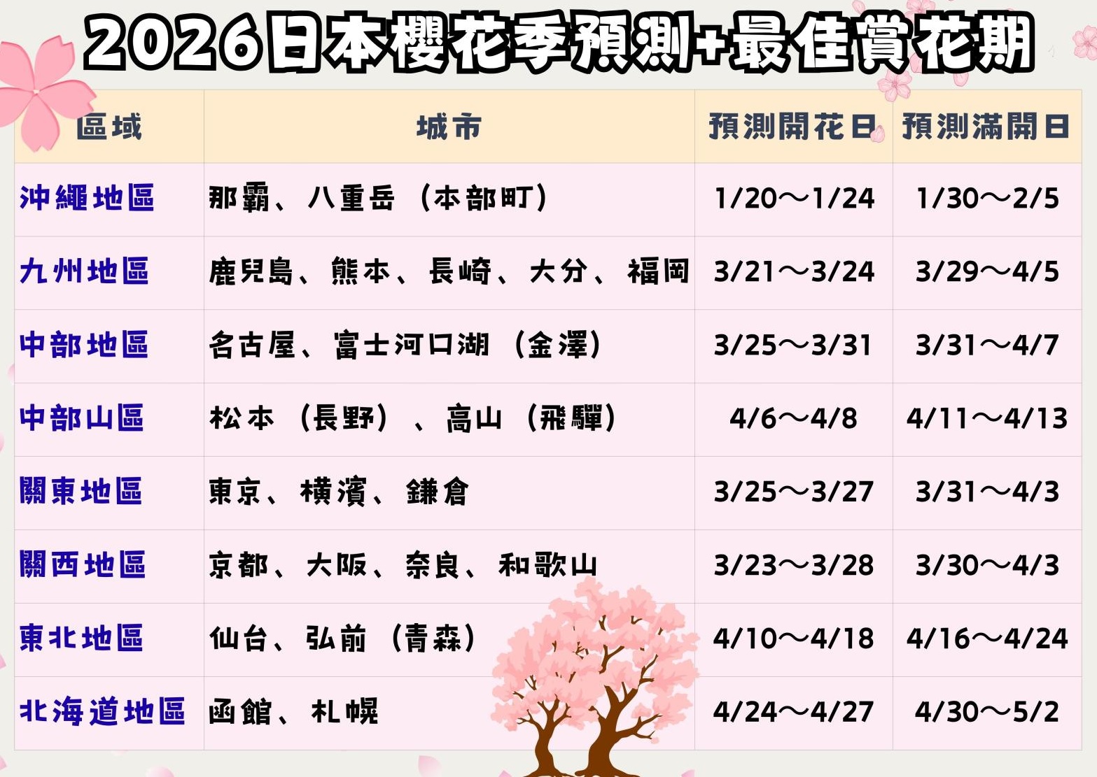🌸2026日本賞櫻全攻略|預測時段 × 各地亮點一覽🌸