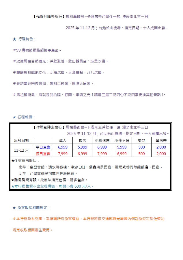 | 獨立套房 | 以網站各團所列價格為準 | 以網站各團所列價格為準 | 以網站各團所列價格為準 |