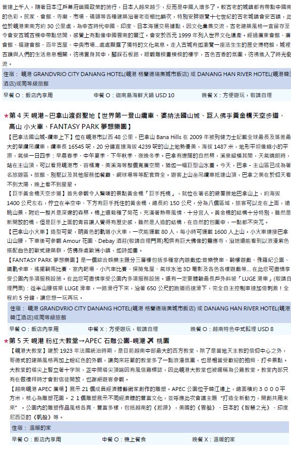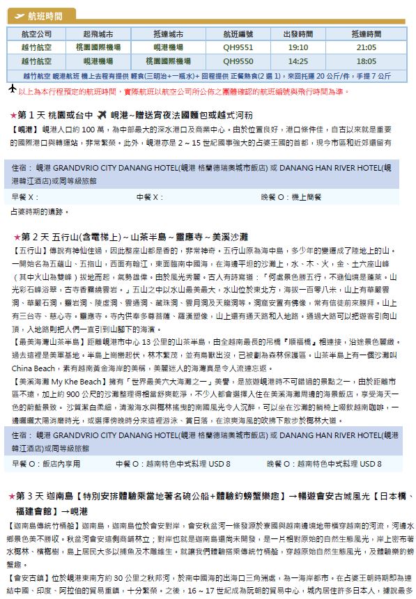 5. 本優惠行程僅適用本國人(持中華民國護照)於台灣出發同行參團有效,越南當地人士、或越南出生(含越南新娘)、或越南工作、或設廠台商、或越南當地JOIN者,不接受參團,另外其他非本國籍人士(外籍人士)需另加價。