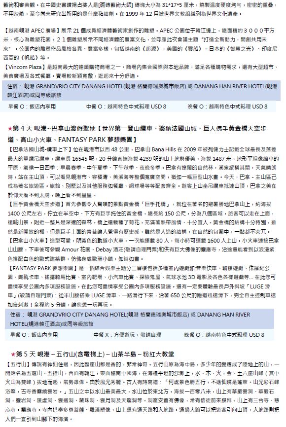 5. 本優惠行程僅適用本國人(持中華民國護照)於台灣出發同行參團有效,越南當地人士、或越南出生(含越南新娘)、或越南工作、或設廠台商、或越南當地JOIN者,不接受參團,另外其他非本國籍人士(外籍人士)需另加價。