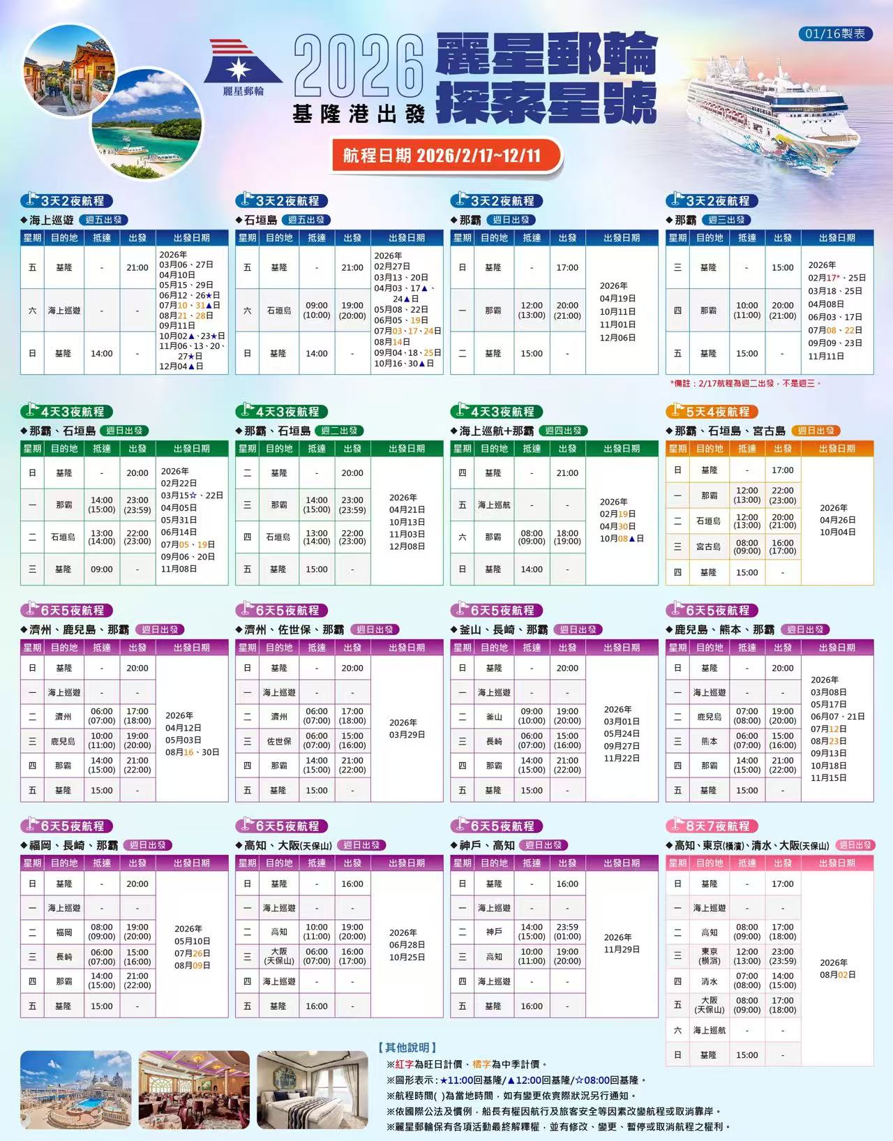 5.郵輪在不可抗力及惡劣天候因素下保有取消或更改既定航程、時間、船隻及更改價格之權利,恕不作預先通知。