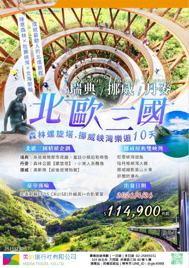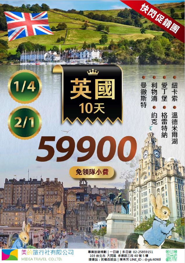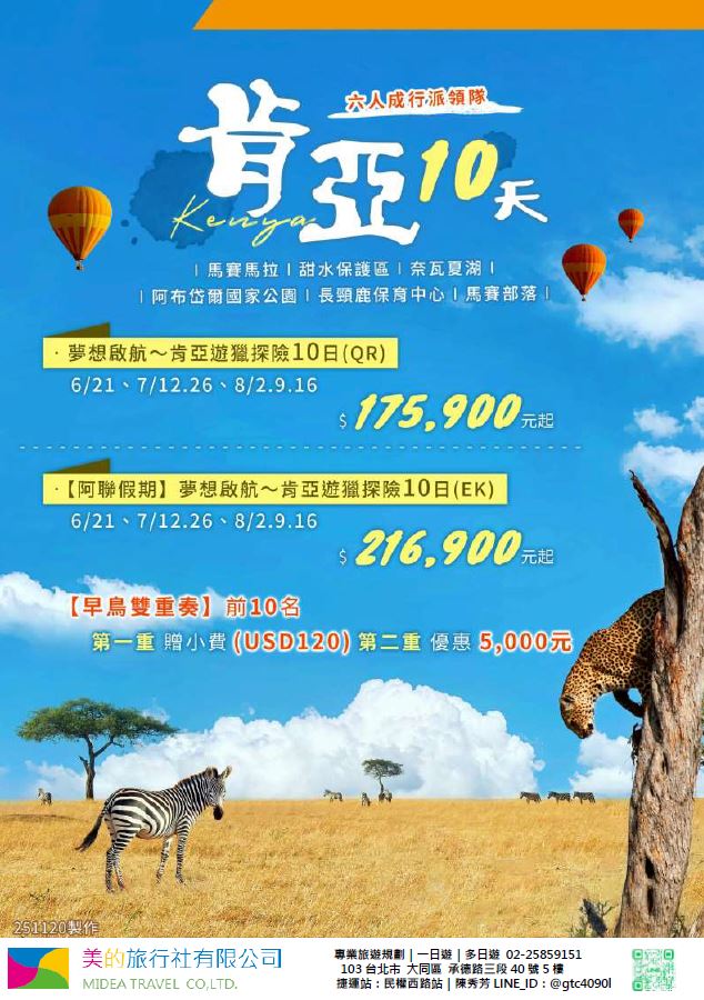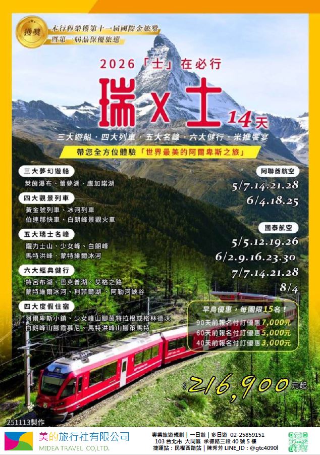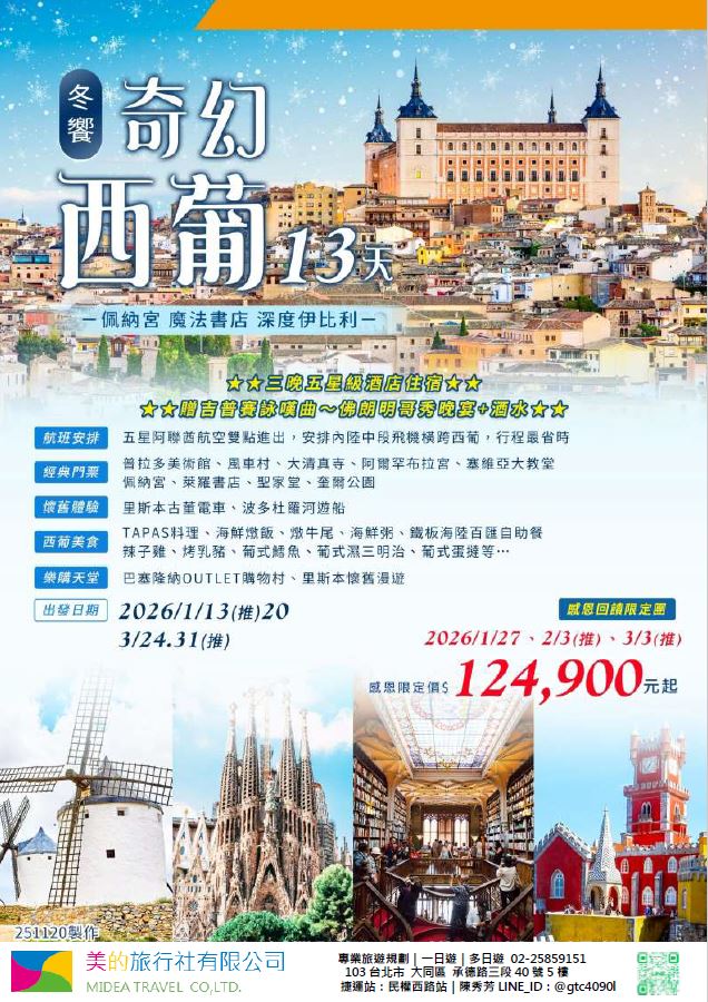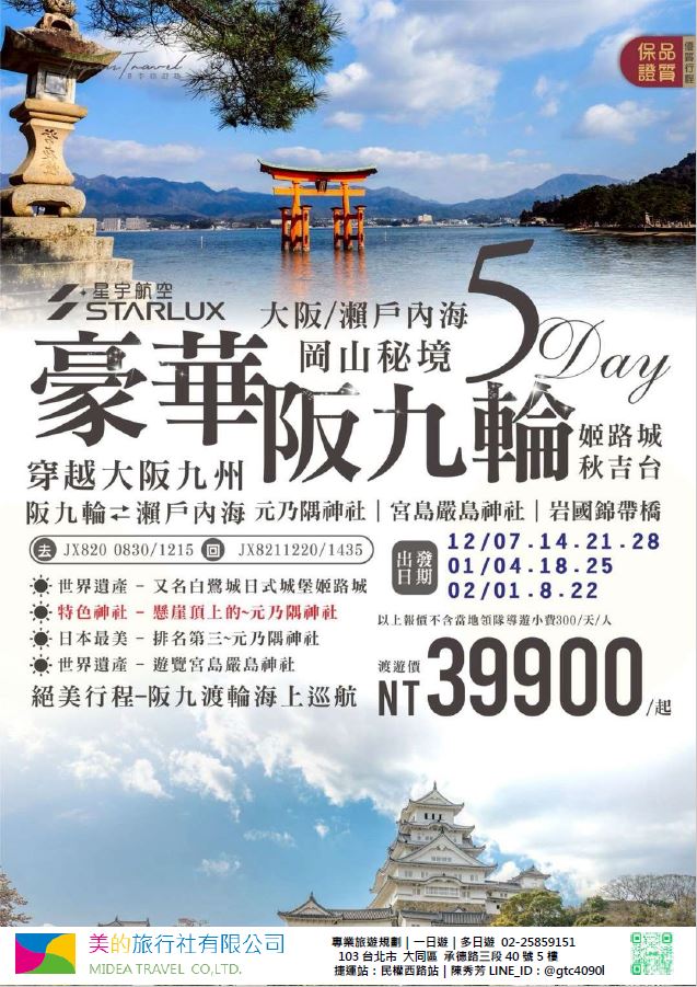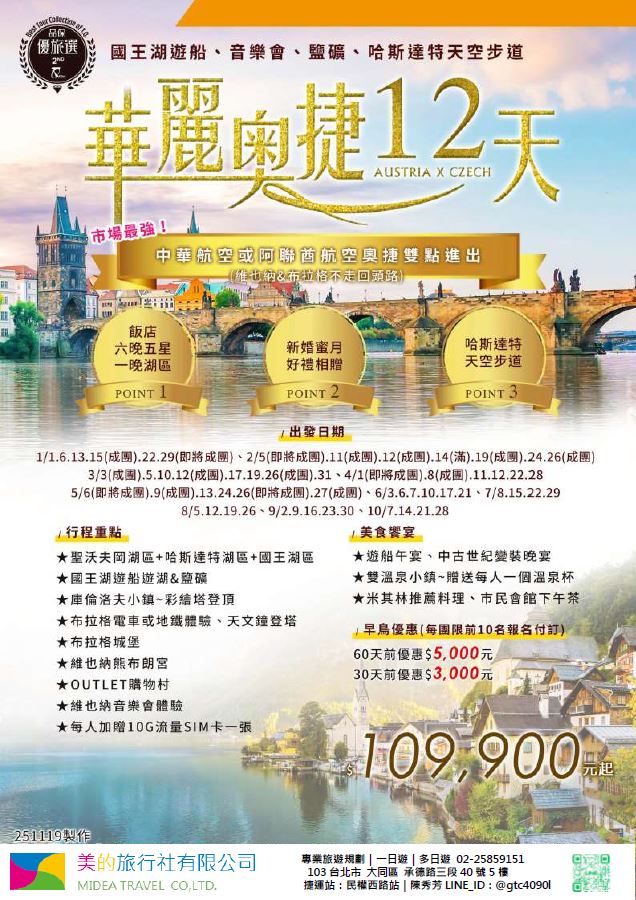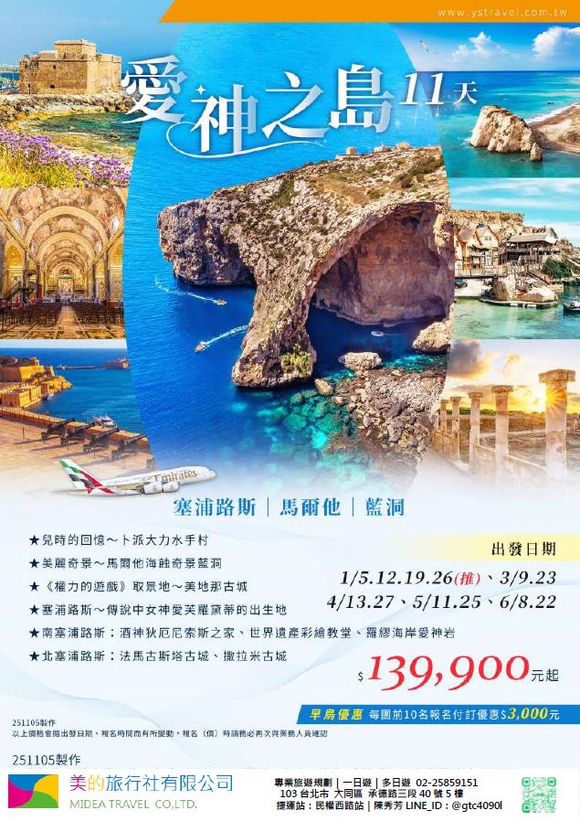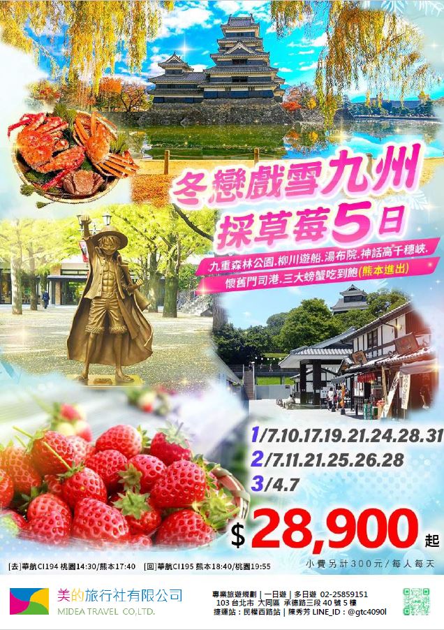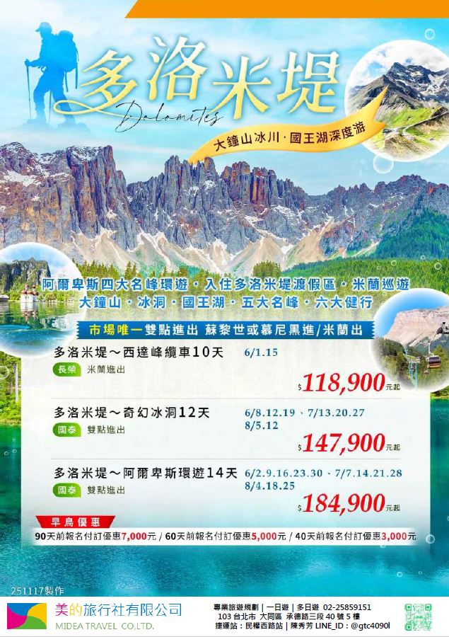 | | 地區/國家 | 行程 | 出發日期 | 價格 | 早島優惠 | | 東南亞 | 新吉橙全覽10天 | 2/10 | 51900 | 第2人減1萬 | | | 尊爵馬新6天 | 2/12 | 37900 | 第2人減5千 | | | | 2/19,2/17,2/14,2/16 | 39900/43900/45900 | | | | 尊爵吉隆坡6天 | 2/13,2/19,2/14-16,2/17 | 39900/43900/45900 | 第2人減5千 | | | 沙巴6天 | 2/13,2/19,2/14-16,2/17 | 45900/47900/49900 | 升五星芙2晚+1自助餐 | | | 古晉+汶萊8天 | 2/8 | 39900 | | | | 泗水+汶萊8天 | 2/8 | 39900 | | | | 樂活泰國6天 | 2/18,2/19 | 33900 | 第2人減5千*候補* | | | 精彩曼谷6天 | 2/18,2/19 | 43900/39900 | 第2人減5千 | | | 星宇精彩曼谷5天 | 2/13 | 43900 | 第2人減1萬 | | | 豪華清邁6天 | 2/12 | 39900 | | | | | 2/19 | 43900 | | | | 清邁+曼谷10天 | 2/13 | 55900 | 第2人減1萬 | | | 星宇河內5天 | 2/16,2/18 | 43900 | 第2人減5千 | | | 吉婆島全覽8天 | 2/9 | 33900 | | | | 精彩富國島6天 | 2/13,2/15,2/19 | 42900/47900/39900 | | | 韓國 | 可依首爾滑雪5天 | 2/14 | 35900 | | | | 易斯達首爾滑雪6天 | 2/18 | 37900 | *候補* | | | 濟州樂園5天 | 2/15 | 37900 | 第2人減5仟 | | | 濟州超值5天 | 2/18 | 29900 | | | | 尊爵濟州5天 | 2/14 | 36900 | 第2人減5仟 | | | 釜山滑雪5天 | 2/16 | 38900 | *餘1席* | | | | 2/19,2/20 | 29900 | | | | | 2/17 | 36900 | *候補* | | 日本 | 東京樹冰5天 | 2/12 | 49900 | *午班機* | | | | 2/16 | 59900 | | | | | 2/18 | 60900 | *午班機* | | | 大阪玩雪5天 | 2/11 | 44900 | *泰越捷* | | | | 2/13 | 49900 | *泰越捷* | | | | 2/13 | 48900 | *亞航* | | | 大阪雙樂園5天 | 2/17 | 54900 | *售完* | | | 豪華沖繩5天 | 2/11 | 35900 | *泰越捷* | | | | 2/16 | 45900 | *泰越捷* | | | 沖繩渡假村5天 | 2/18 | 51900 | *泰越捷* | | | 豪華沖繩4天 | 2/15,2/16 | 39900 | *泰越捷2/15/亞航2/16* | | | | 2/20 | 27900 | *亞航2/20* | | | 山陰山陽8天 | 2/2,2/16 | 51900 | *亞航2/16過年69900* | | | 北海道破冰船6天 | 2/11 | 49900 | *名額餘1* | | | | 2/13,2/18 | 65900 | | | | | 2/16 | 69900 | | | 歐州長線 | 土耳其10天 | 2/10 | 49900 | *松山回* | | | 土耳其15天 | 2/14,2/20 | 89900 | *早班機*2/14餘2 | | | | 2/19 | 89900 | *晚班機* | | | 精彩希臘13天 | 2/10 | 79900 | | | | 杜拜8天 | 2/10 | 49900 | | | | 雪梨6天 | 2/15 | 59900 | | | | 雪梨墨爾本10天 | 2/10 | 79900 | | | | 埃及10天 | 2/15 | 89900 | | | | 快閃巴爾幹17天 | 2/8,2/12 | 79900 | | | | 精彩巴爾幹17天 | 2/5,2/21 | 89900 | | | | | 2/7,2/19,2/22 | 99900 | | | | 快閃波波17天 | 2/11 | 79900 | | | | 精彩波波17天 | 2/15,2/18 | 99900 | | | | 西葡+摩洛哥17天 | 2/1 | 119900 | 第2人減1萬 | | | | 2/22 | 119900 | 無 | | | 奧+北義15天 | 2/2 | 99900 | *行程調整中* | | | | 2/23 | 109900 | | | | 克斯15天 | 2/2,2/25 | 79900 | | | | | 2/7,2/14 | 89900 | | | | 奧捷15天 | 2/1,2/4 | 89900 | | | | | 2/9,2/15 | 89900 | | | | 瑞士冬火車 | 2/8,2/17 | 149900 | | | | 德瑞15天 | 2/16 | 109900 | | | | 南法15天 | 2/15,2/23 | 109900 | | | | 義大利15天 | 2/11 | 109900 | *面具節* | | | 西葡15天 | 2/6 | 99900 | *巴塞隆納進出* | | | | 2/10 | 99900 | *馬德里進出* | | | 精彩北歐15天 | 2/4 | 99900 | | | | 極光北歐15天 | 2/7 | 139900 | 第2人減1萬 | | | | 2/22 | 139900 | 無 | | | 芬蘭極光12天 | 2/9 | 109900 | | | | 芬蘭破冰船15天 | 2/9,2/16 | 159900 | | | | 地中海郵輪12天 | 2/18 | 99900 | 第2人減1萬 | | | | 2/26 | 89900 | | |
