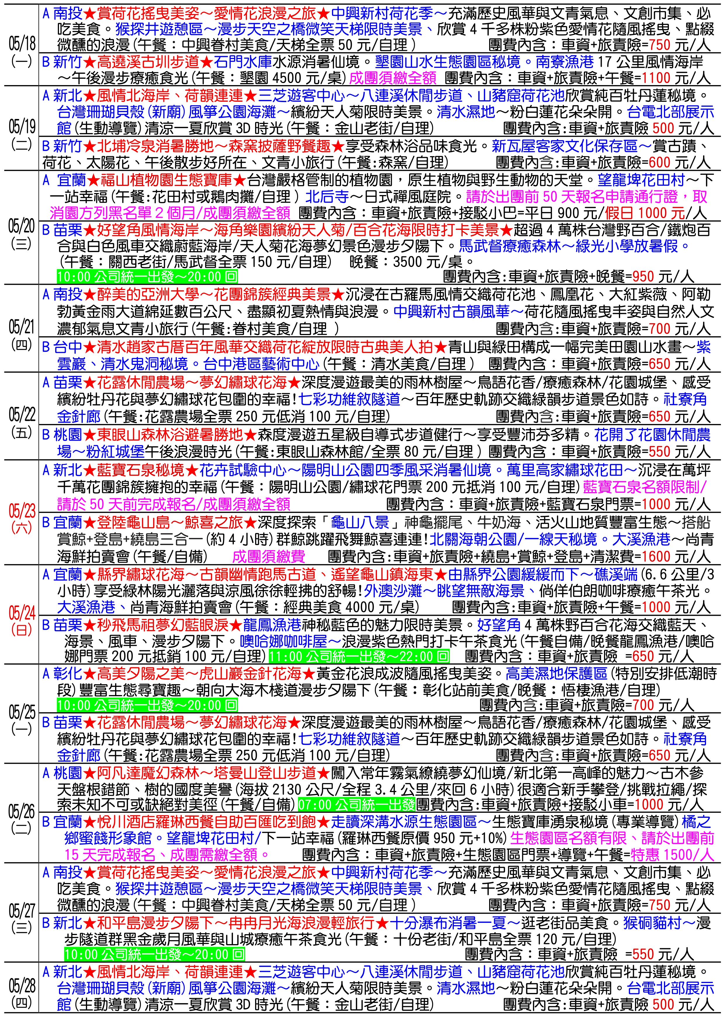 行程新訊不錯過