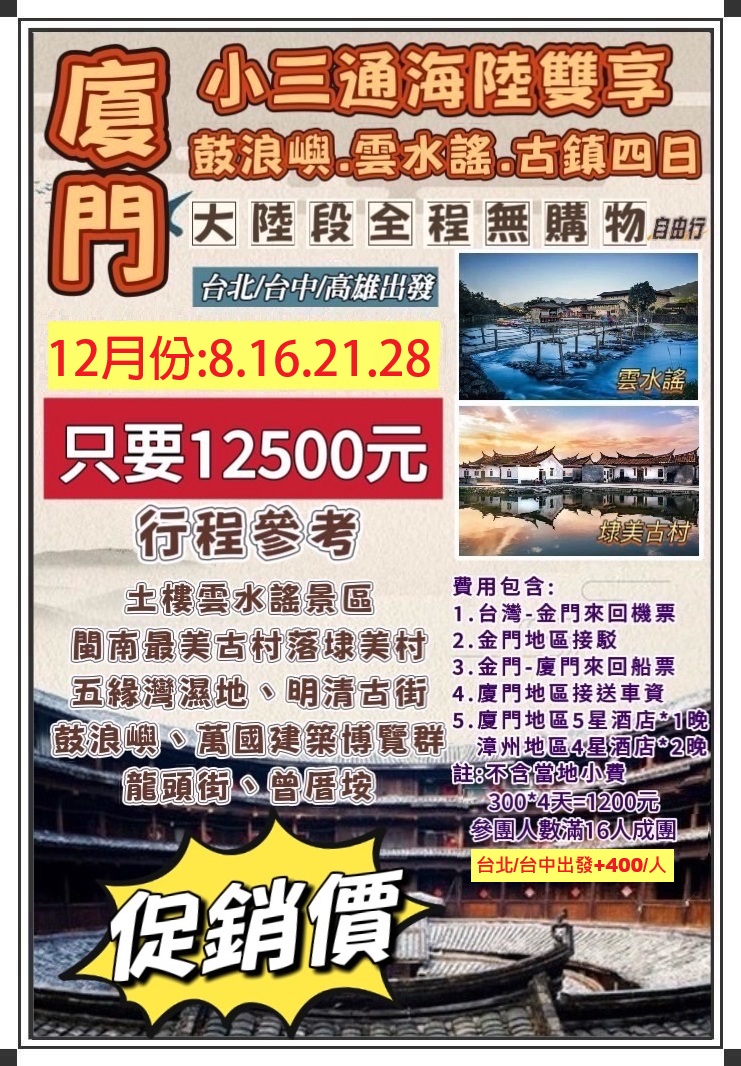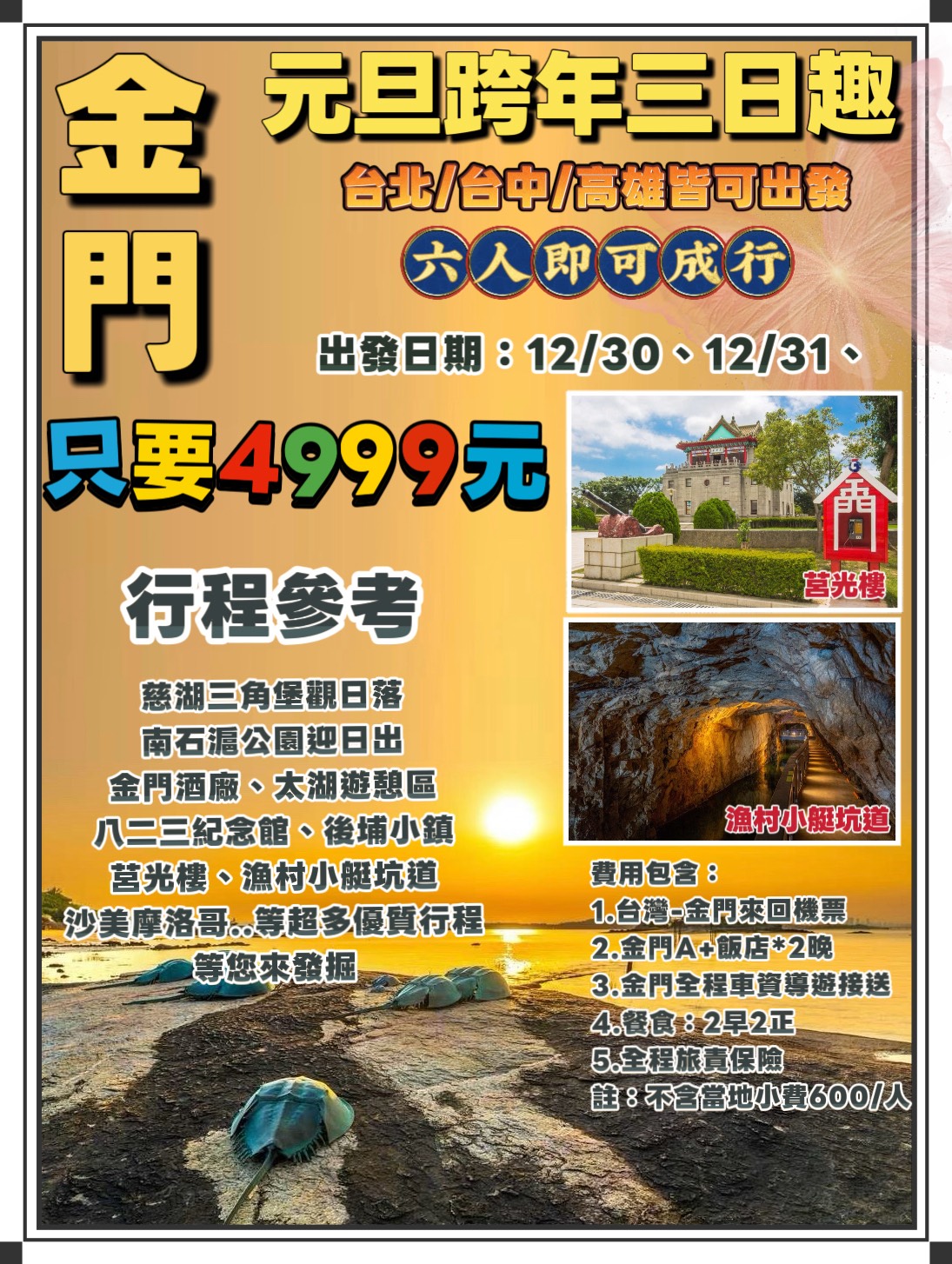 ※所有行程、出團日期、價格及相關出團規定等相關內容,皆以各行程公告之內容為準。