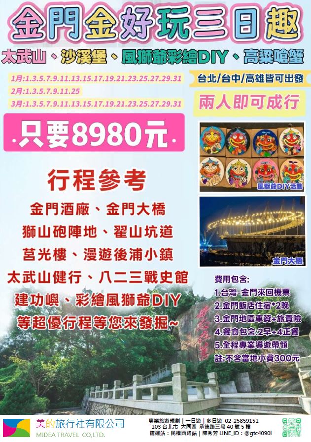 澎湖、金門、馬祖行程快訊