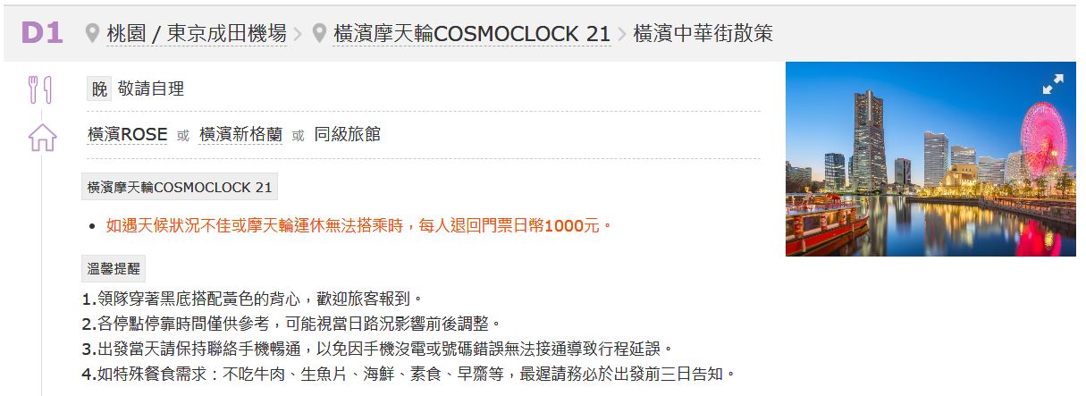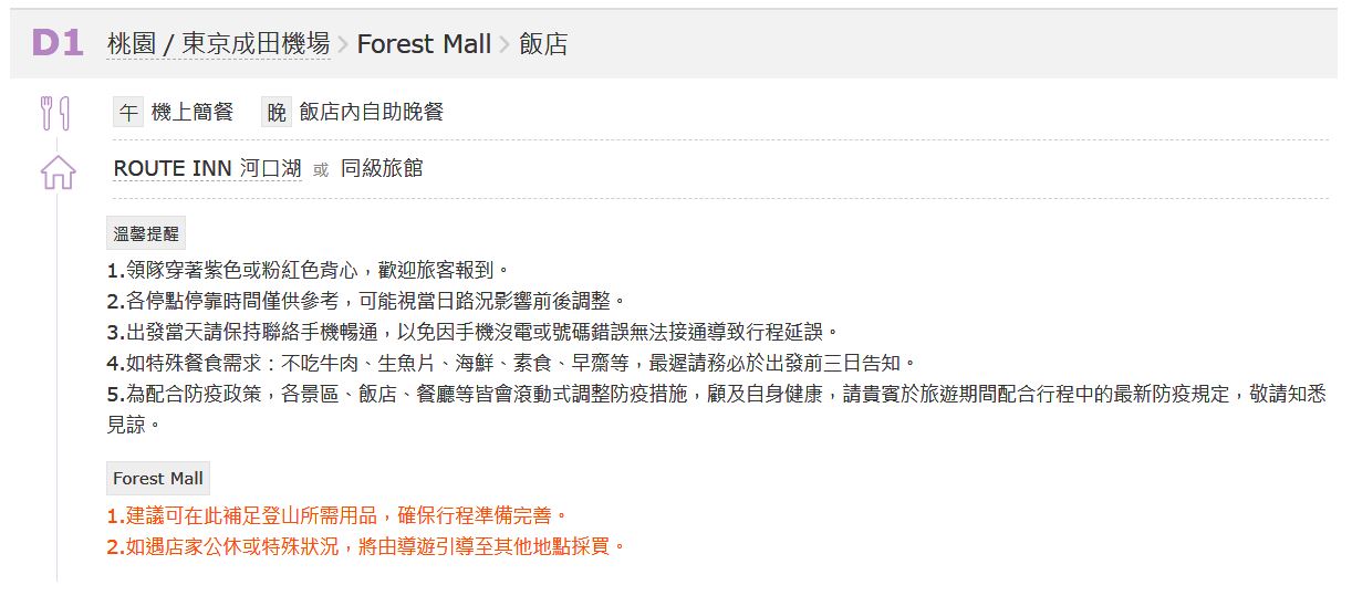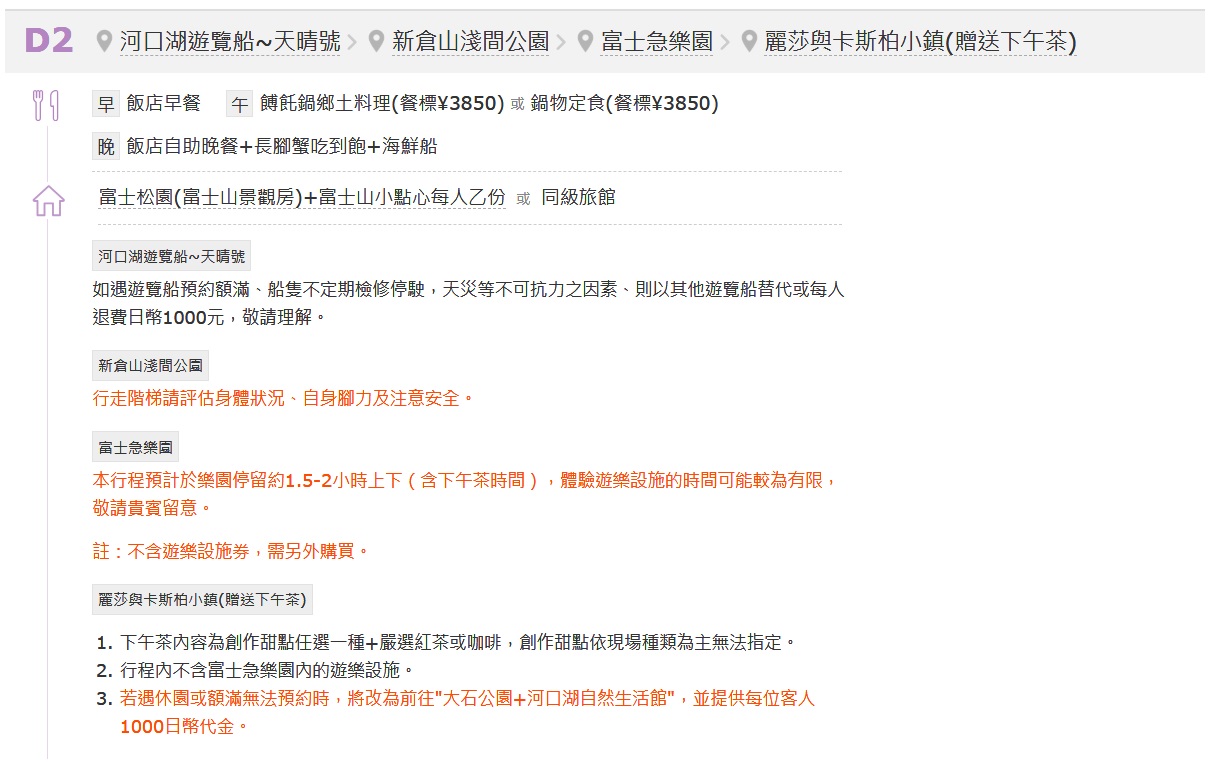 - 為顧及旅客之人身安全,恕無法接受於旅遊期間脫隊之要求;若因此而無法滿足您的旅遊需求,建議您選購套裝自由行。