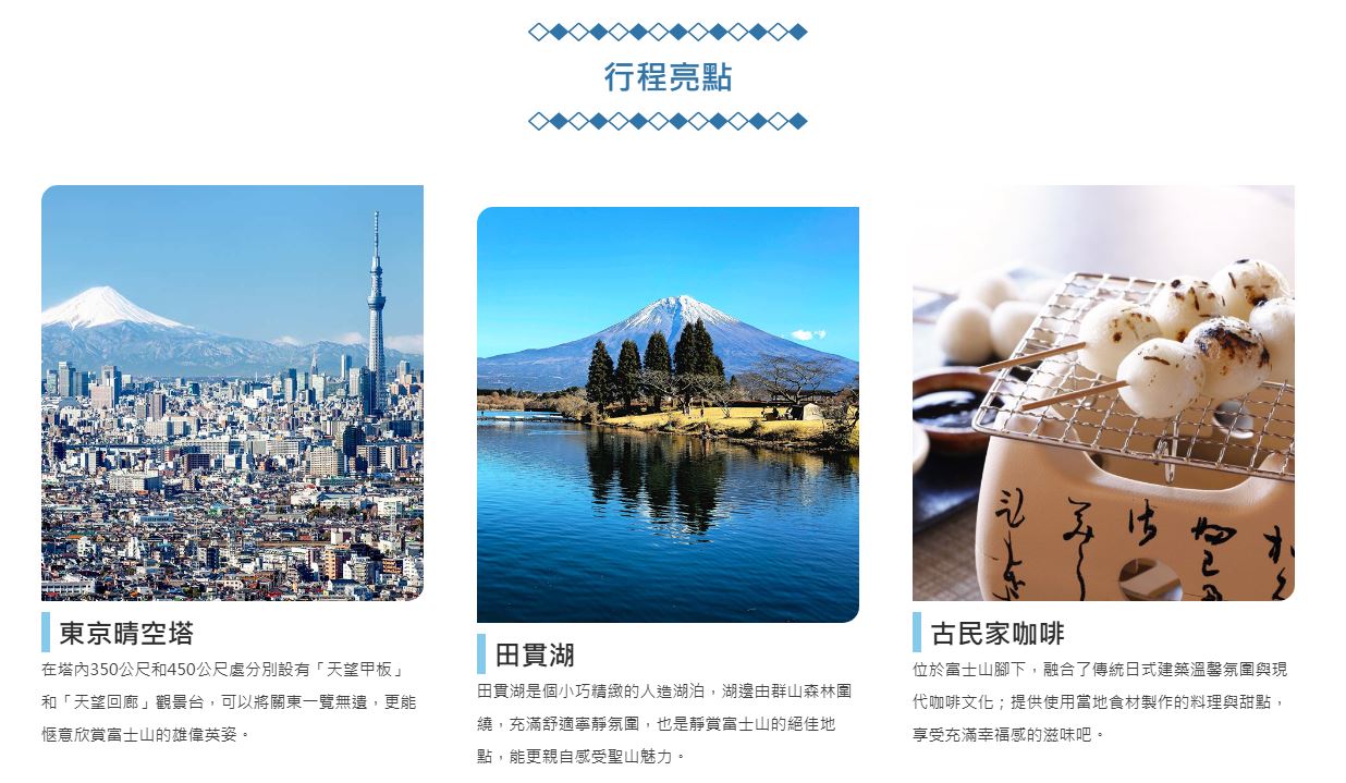 - 本行程為團體旅遊,誠請各位貴賓遵守團體集合時間。