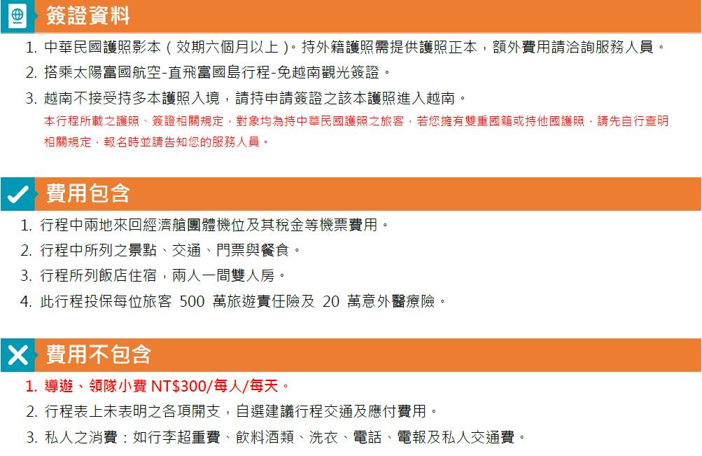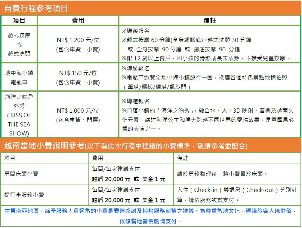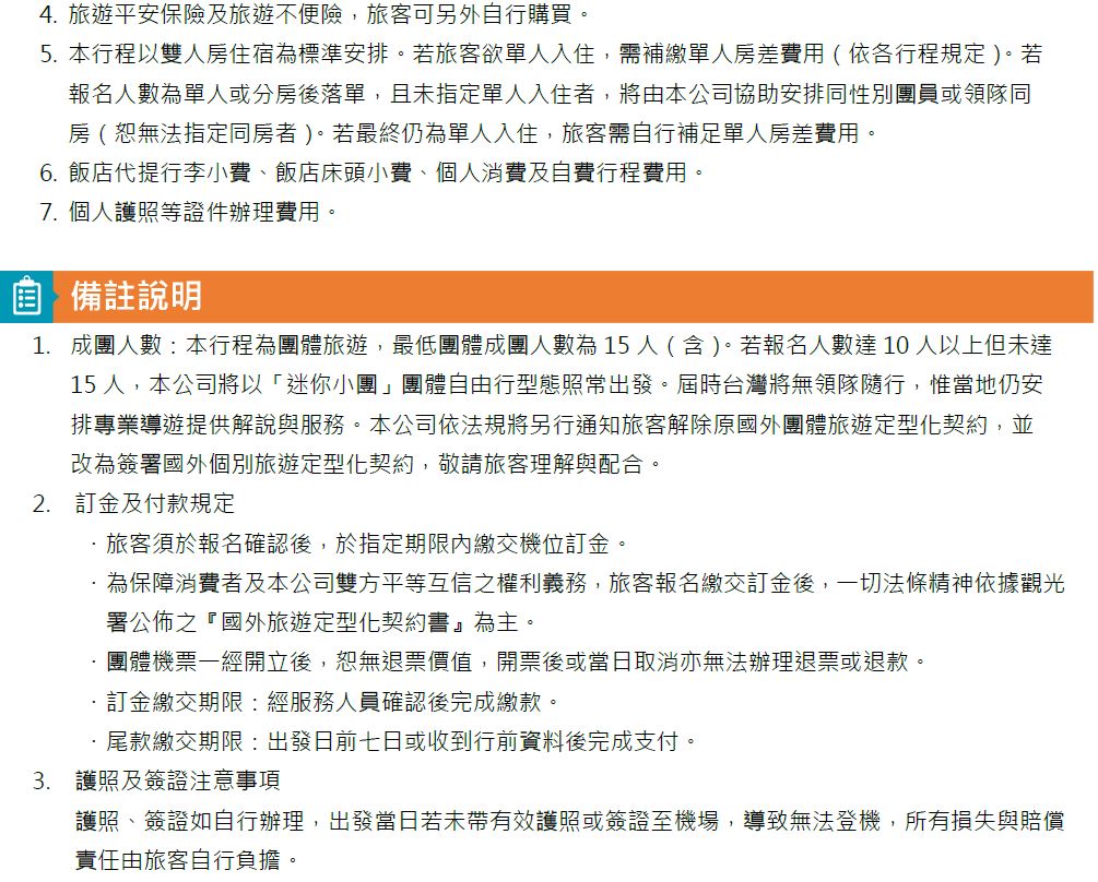 行程費用※行程費用皆以人頭計算
