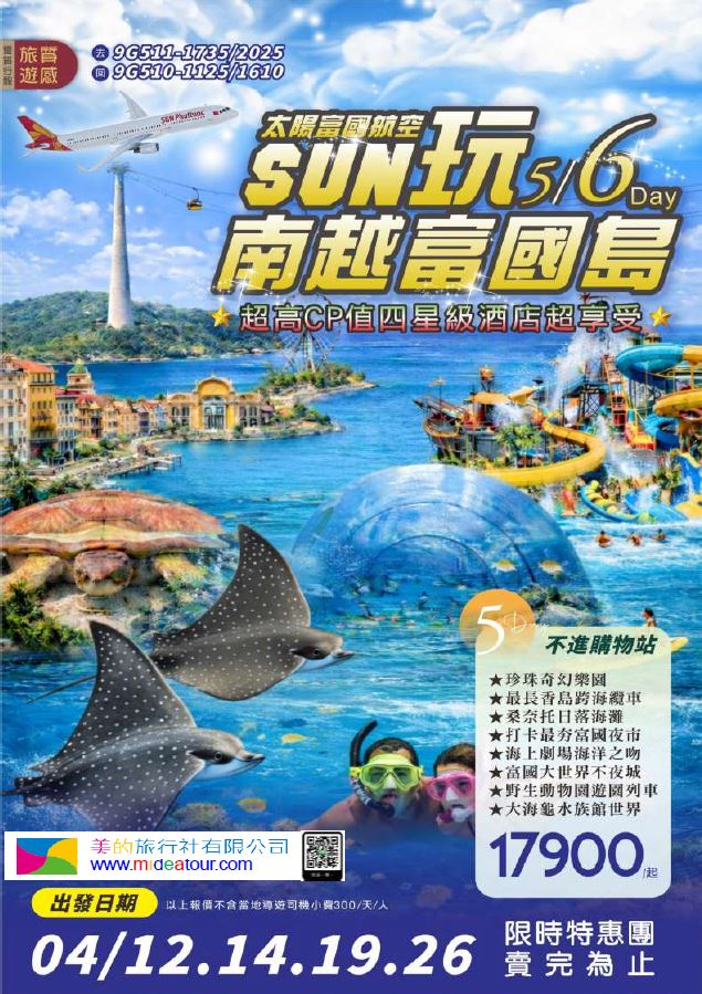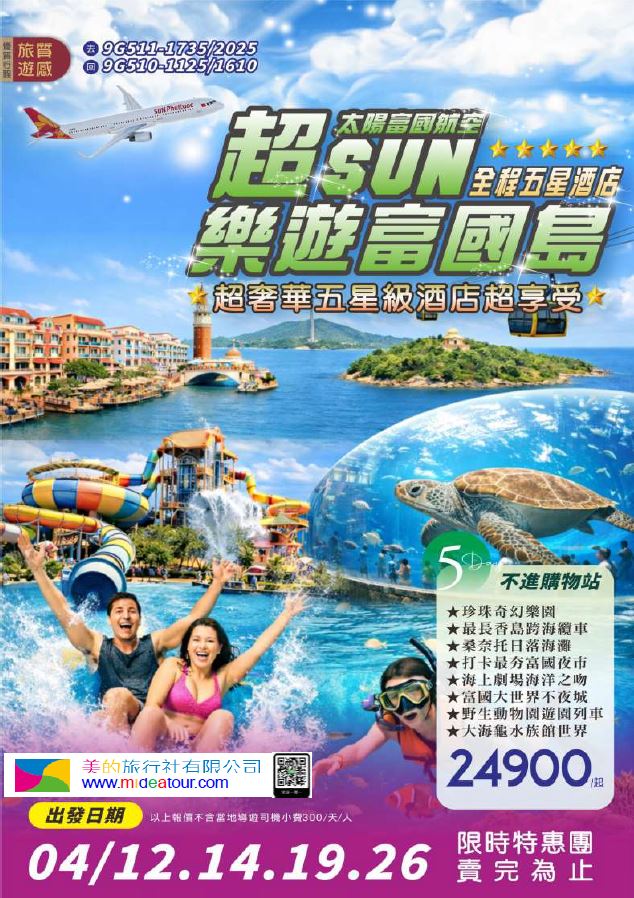 【美的嚴選】超SUN樂遊富國島渡假5日/6日