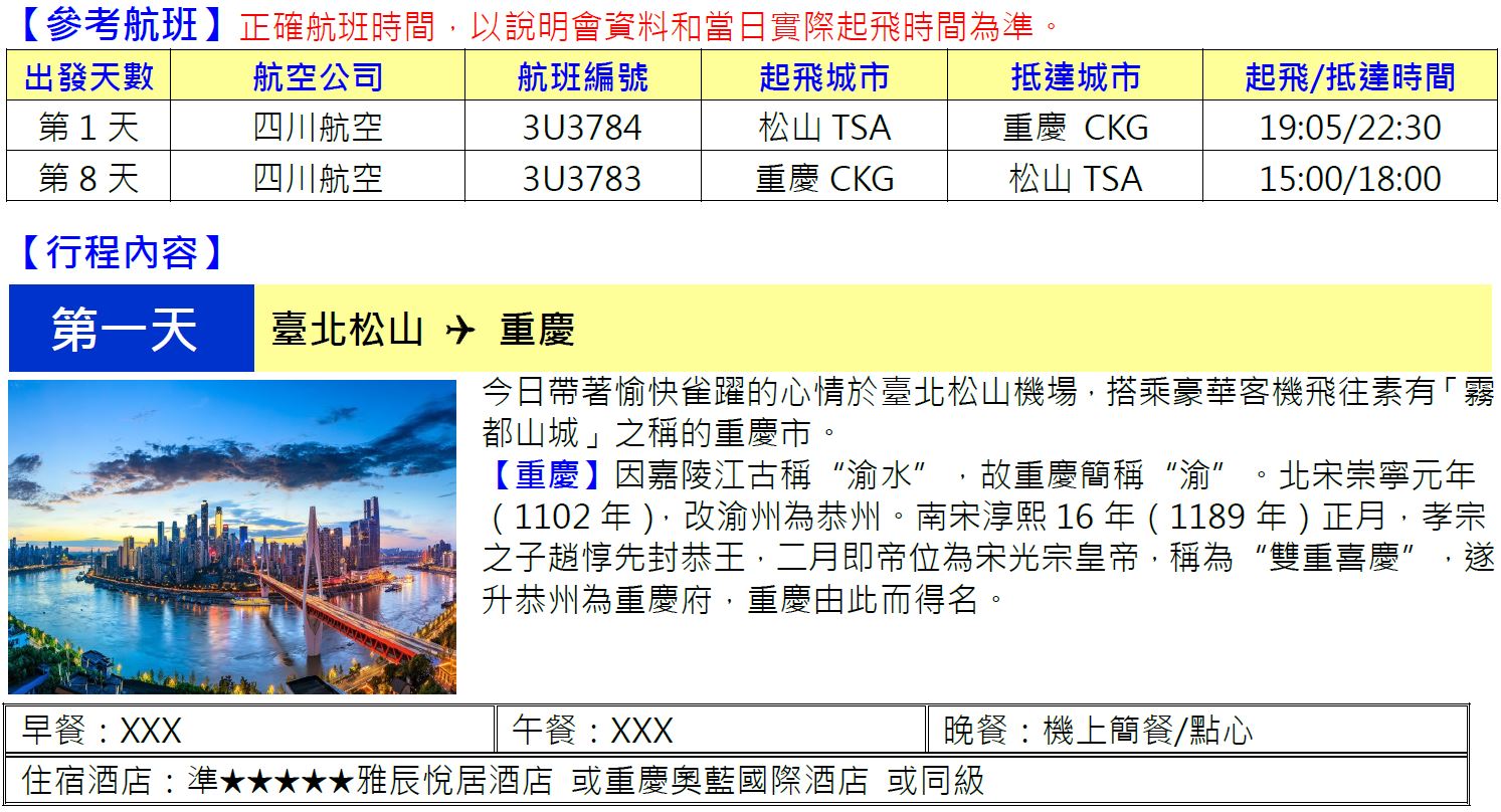•正確行程內容、順序、班機時間、降落城市以及住宿飯店,請以行前旅遊手冊之行程表或說明會資料為準。