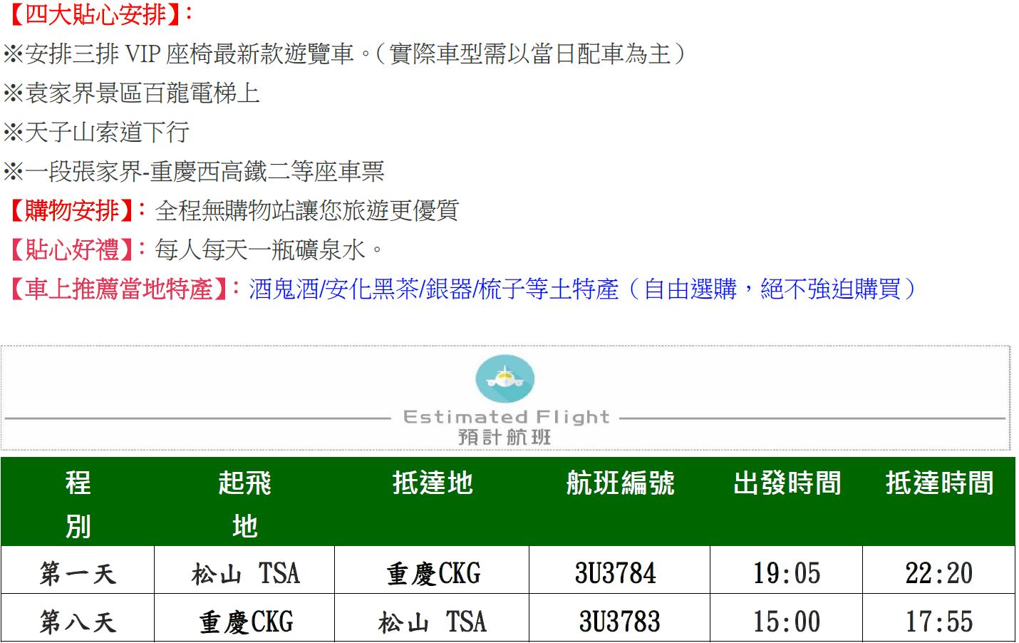 ●大陸線-預訂須知