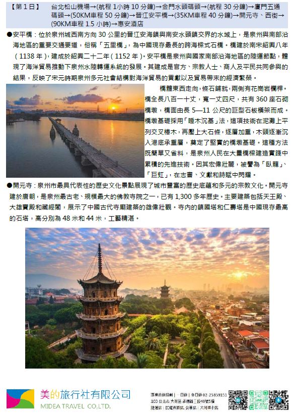 ※以下請洽美的小芳詢問詳細行程及出團梯次