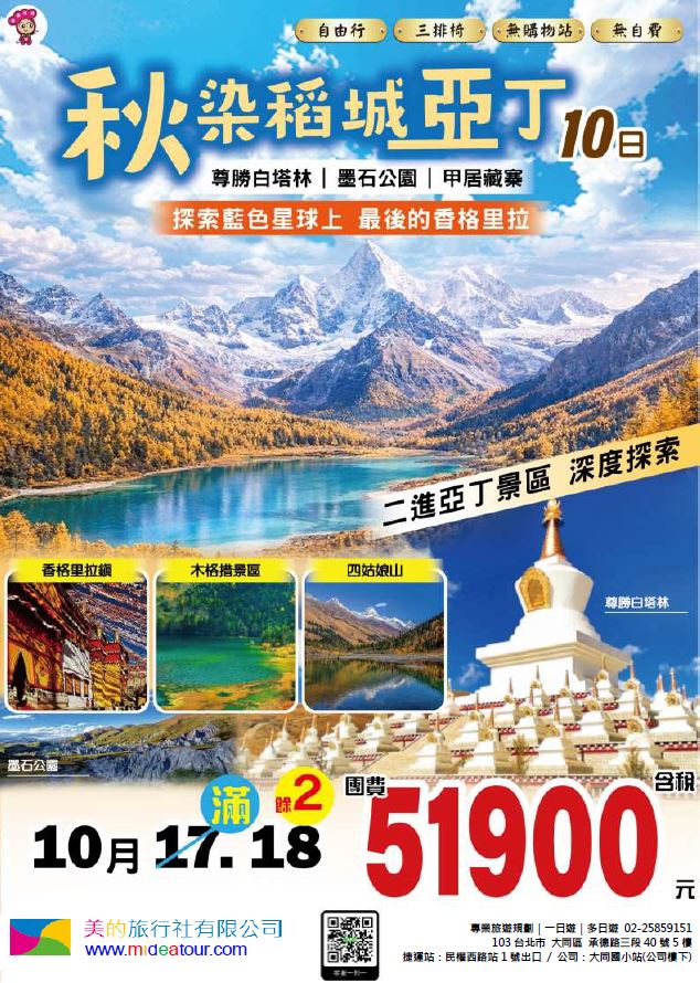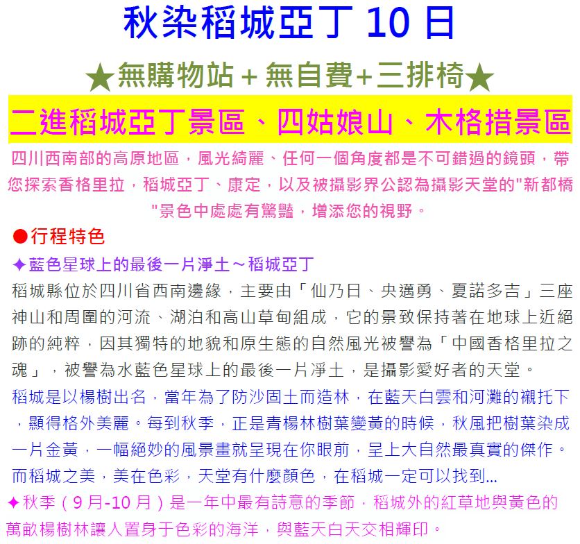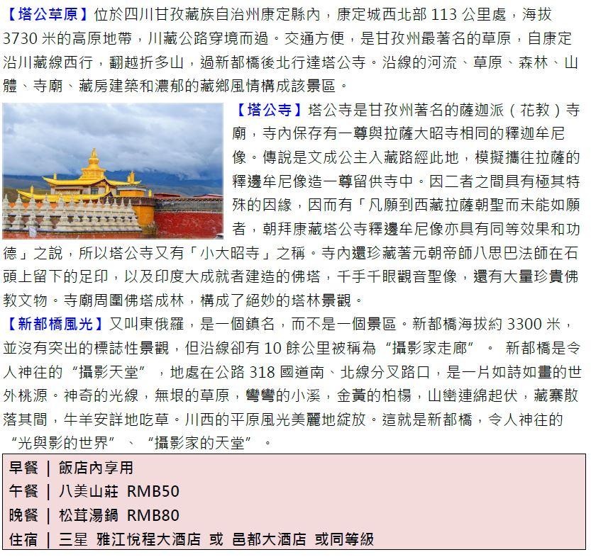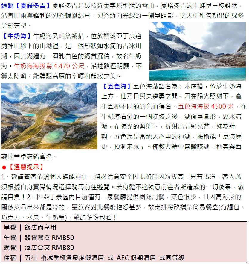 【定製自由行】香格里拉稻城亞丁9/10日