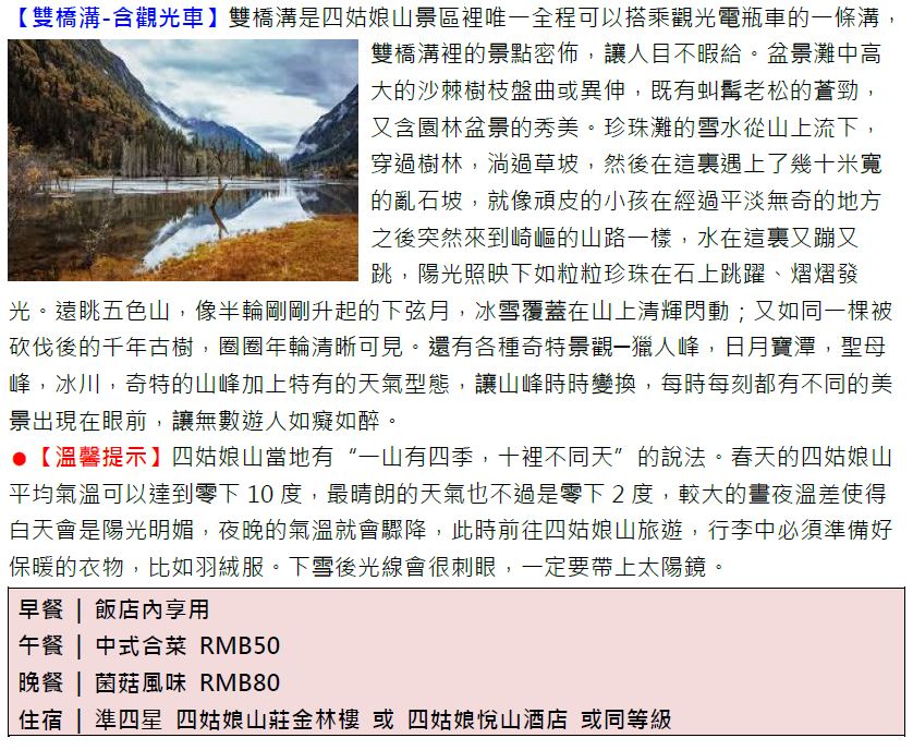 | 雙人套房 | 僅提供代訂機+酒+交通服務依出發日期價格以準 | 僅提供代訂機+酒+交通服務依出發日期價格以準 | - |