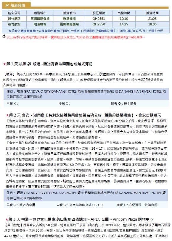 5. 本優惠行程僅適用本國人(持中華民國護照)於台灣出發同行參團有效,越南當地人士、或越南出生(含越南新娘)、或越南工作、或設廠台商、或越南當地JOIN者,不接受參團,另外其他非本國籍人士(外籍人士)需另加價。