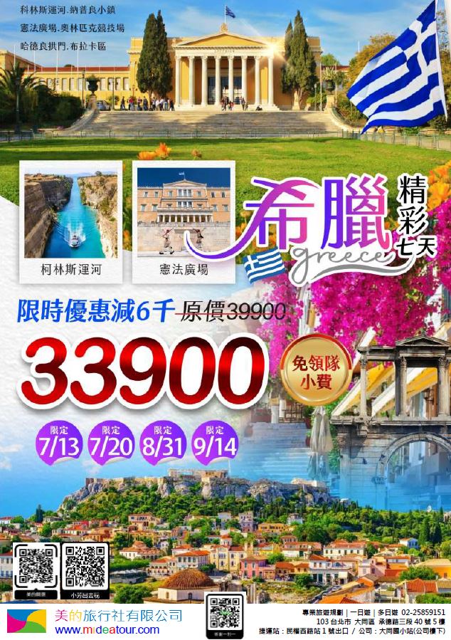只要一張飛往歐州機票價格團費,讓您走進歷史課本中的古希臘文明,親臨雅典衛城仰望壯麗的帕德嫩神廟,搭配專業(自費)導覽,深入了解宙斯、雅典娜等神話故事,讓遺跡不再只是石頭,而是有溫度的歷史。行程涵蓋柯林斯運河壯闊地形、憲法廣場衛兵交接與經典城市巡禮。特別安排上海轉機延伸體驗,可搭乘高速磁浮列車進市區,輕鬆暢遊外灘夜景與城隍廟商圈,增添雙城旅行樂趣。全程節奏舒適、重點景點一次收錄,讓您用最輕鬆方式收藏歐洲文明與亞洲都會風情!