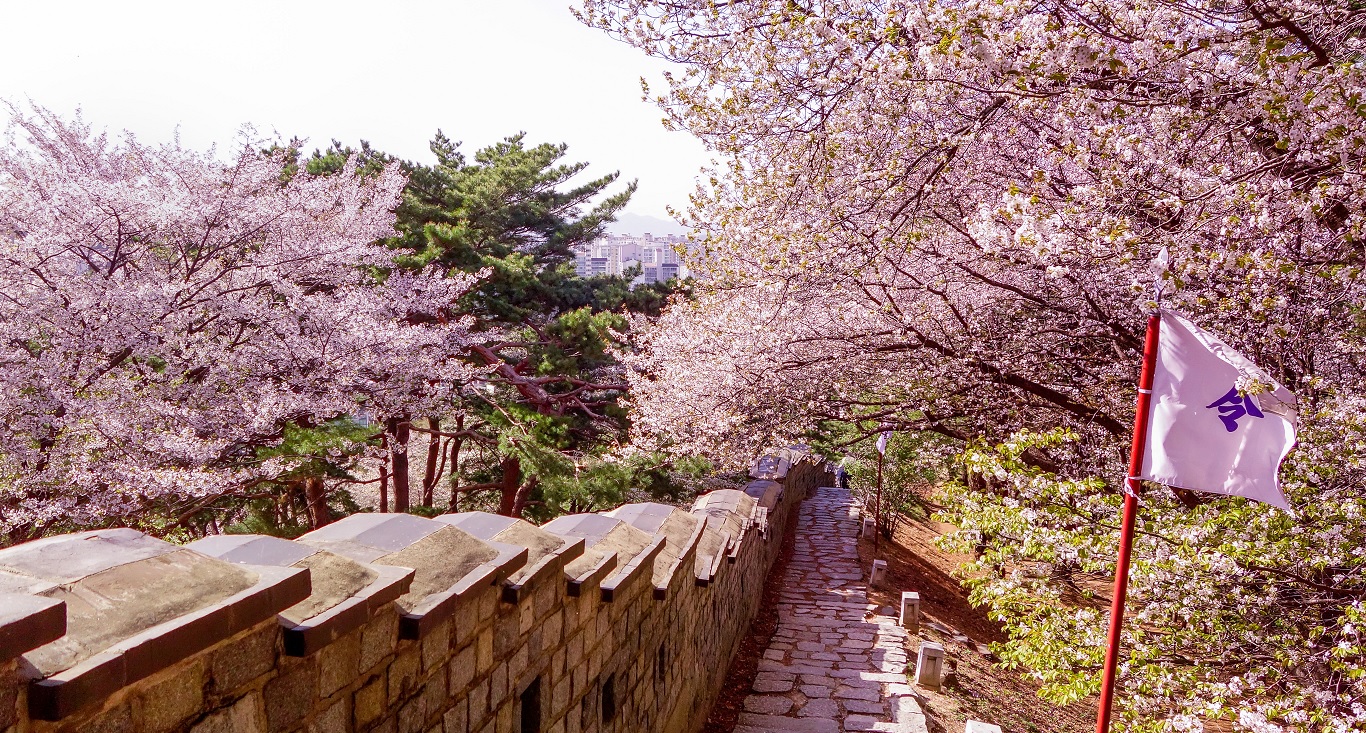 | 沿著城郭步道漫行,粉櫻點綴古城,彷彿置身歷史畫卷。搭乘華城御車悠遊於城牆之間,更能從不同角度欣賞八達門、蒼龍門等名勝的壯麗風光。一路延伸至華城行宮,櫻花與古宮建築相互映襯,呈現優雅而大器的春日景致。