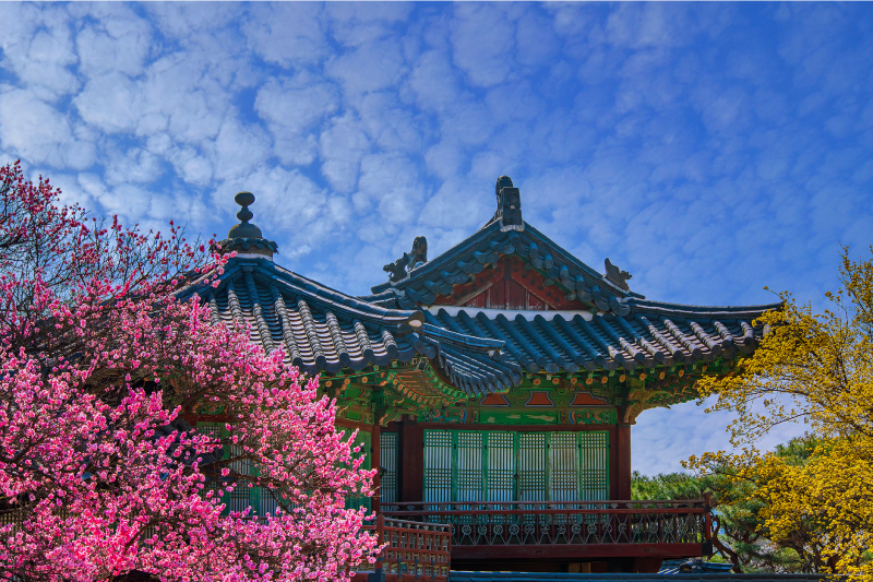 | 春季走訪首爾昌慶宮,正是捕捉宮殿櫻花最動人的時刻。昌慶宮以雅緻、靜謐著稱,相較於其他宮闕更顯細緻溫婉,櫻花盛開時,粉白花瓣在古樸宮牆與亭台樓閣間灑落,形成低調卻極具質感的春日景色。漫步於與昌德宮相連的東闕區域,沿途能欣賞歷史建築、宮苑水池與大片綠意,讓賞櫻的氛圍更加沉穩優雅。