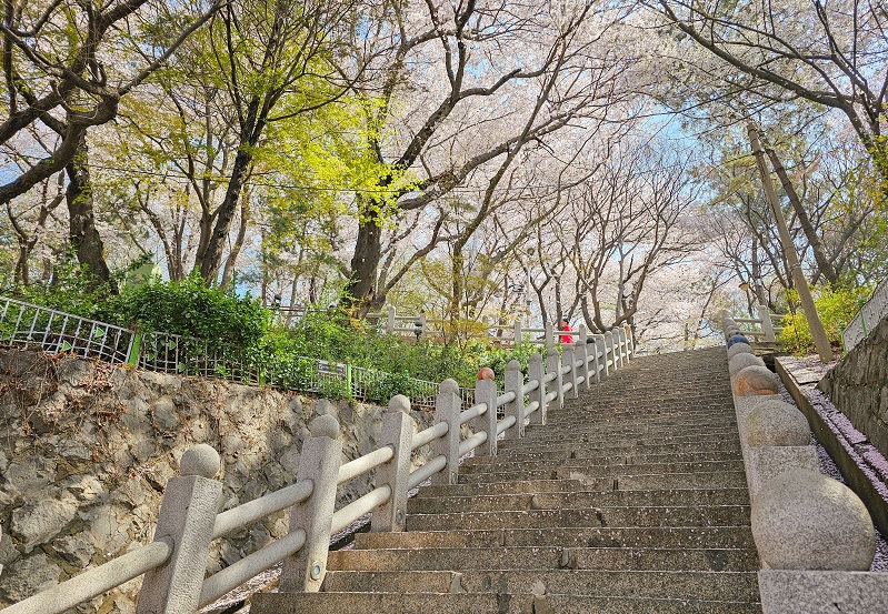 | 自由公園是韓國第一座西式公園,地勢較高、視野遼闊,每到四月道路兩側即被盛開的櫻花覆蓋,形成浪漫的粉色步道。沿著坡道慢慢攀上,可一路欣賞滿開櫻花在陽光下閃耀的景致,而登頂後還能俯瞰仁川港與月尾島,海天一色的遼闊景觀與粉嫩花海相互映襯,格外療癒。 |