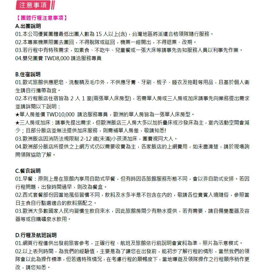 ※國外行程巴士座位僅供參考,依當地實際出團用車為準。